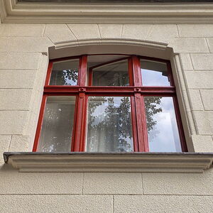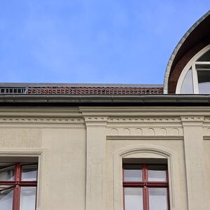 Diese Fassadenart war damals beliebt, da sie nicht nur witterungsbeständig, sondern auch vergleichsweise einfach in der Verarbeitung war. Im Zuge der Renovierung stand die denkmalgerechte Instandsetzung im Mittelpunkt.