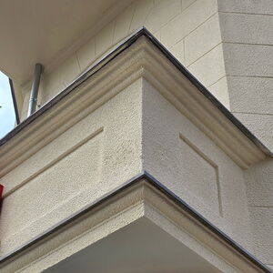 Die vorhandene Putzstruktur wurde eingehend geprüft und anschließend fachgerecht aufgearbeitet, sodass der ursprüngliche Charakter der Fassade erhalten blieb. Auf diese Weise konnte das Gebäude nicht nur gestalterisch, sondern auch technisch für die kommenden Jahre gesichert werden.